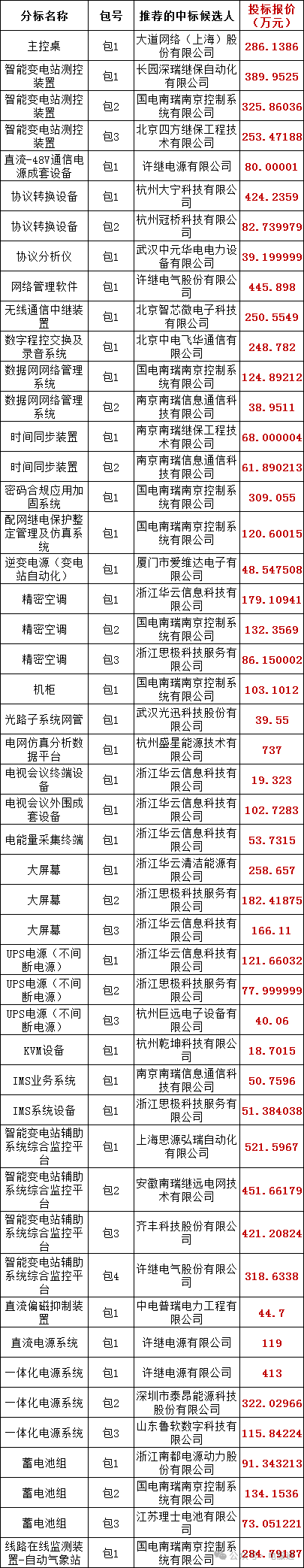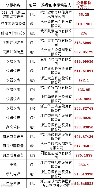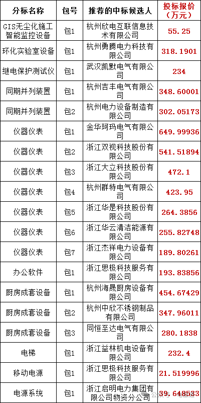 国网浙江省电力有限公司2024年产业单位第三次物资类公开招标采购的评标工作已结束,依据《中华人民共和国招标投标法实施条例》、《招标公告和公示信息发布管理办法》对中标候选人公示的规定,现将评标委员会推荐的中标候选人予以公示,公示期3日。投标人或者其他利害关系人若对评标结果有异议的,请在中标候选人公示期间以书面形式(传真)提出。