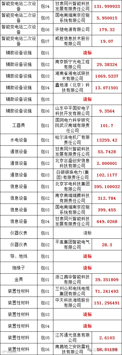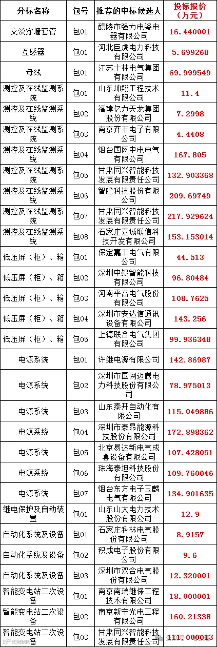 国网甘肃省电力公司2024年第六次物资公开招标采购工作已经结束,依据《中华人民共和国招标投标法实施条例》、《招标公告和公示信息发布管理办法》对中标候选人公示的规定,现将评标委员会推荐的中标候选人予以公示,公示期3日。投标人或者其他利害关系人若对评标结果有异议的,请在中标候选人公示期间以书面形式(电子邮件)提出。