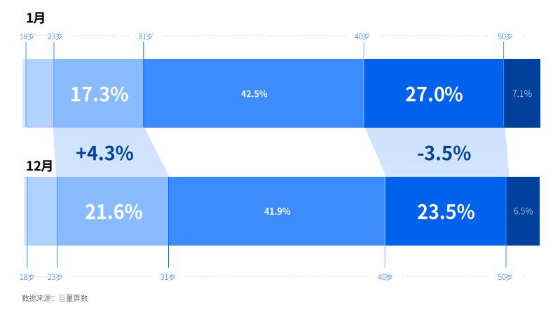 而在客车用户中,31-40岁人群占比超过40%,且未来潜力巨大,而24-30岁人群也具有很大消费潜力。
