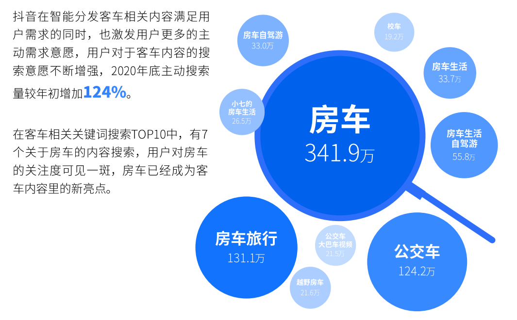 在客车相关关键词搜索TOP10中,有7个关于细分市场——房车的内容搜索,用户对房车的关注度可见一斑,房车已经成为客车内容里的新亮点。