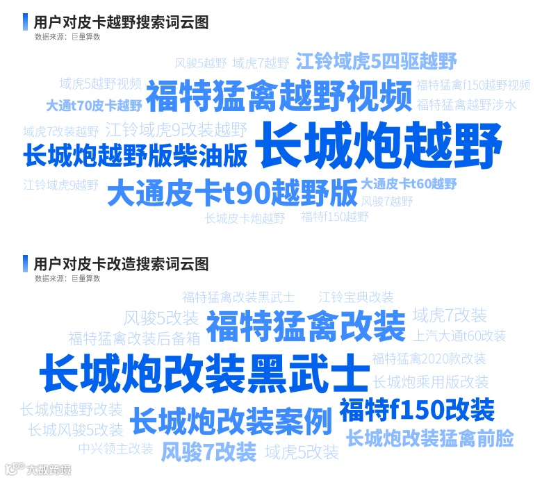 尤其是用户对皮卡的商用属性敏感度渐弱,而关注品牌,越野性,及改装空间等附属功能的高价值用户规模日益扩大。