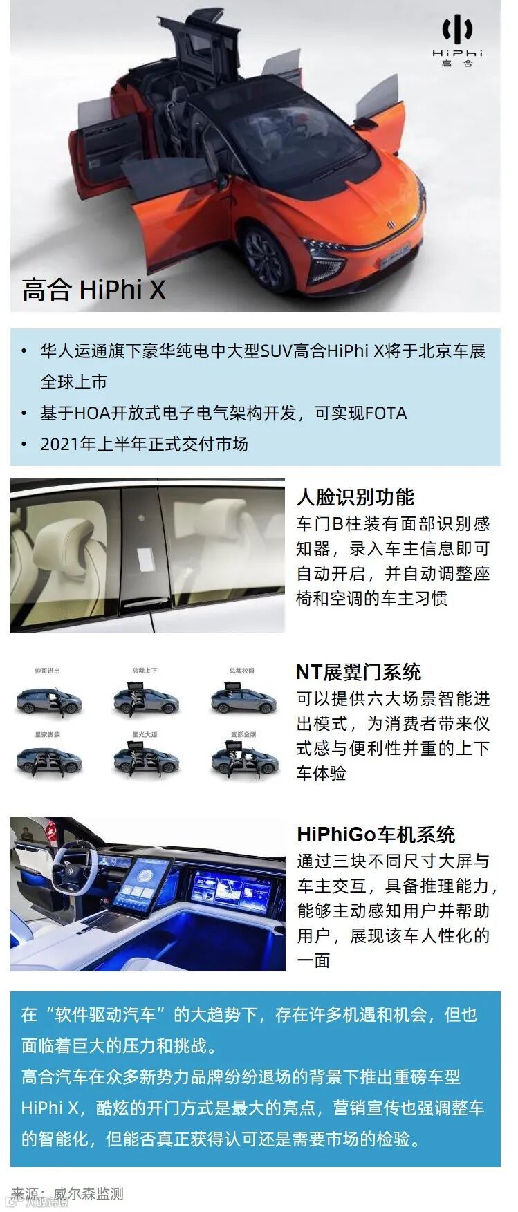 疫情下造车新势力的淘汰速度加快,而此前名不见经传的高合汽车携旗下首款豪华纯电中大型SUV——高合HiPhi X将于北京车展上市,可进化全电动NT展翼门系统是产品最为酷炫的亮点,但能否真正获得认可还需要市场的检验。