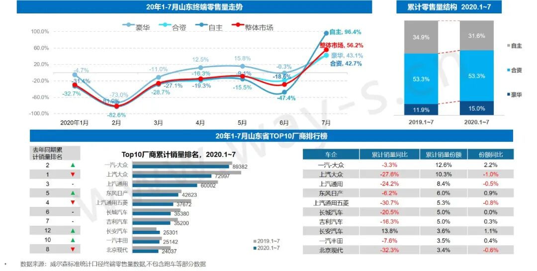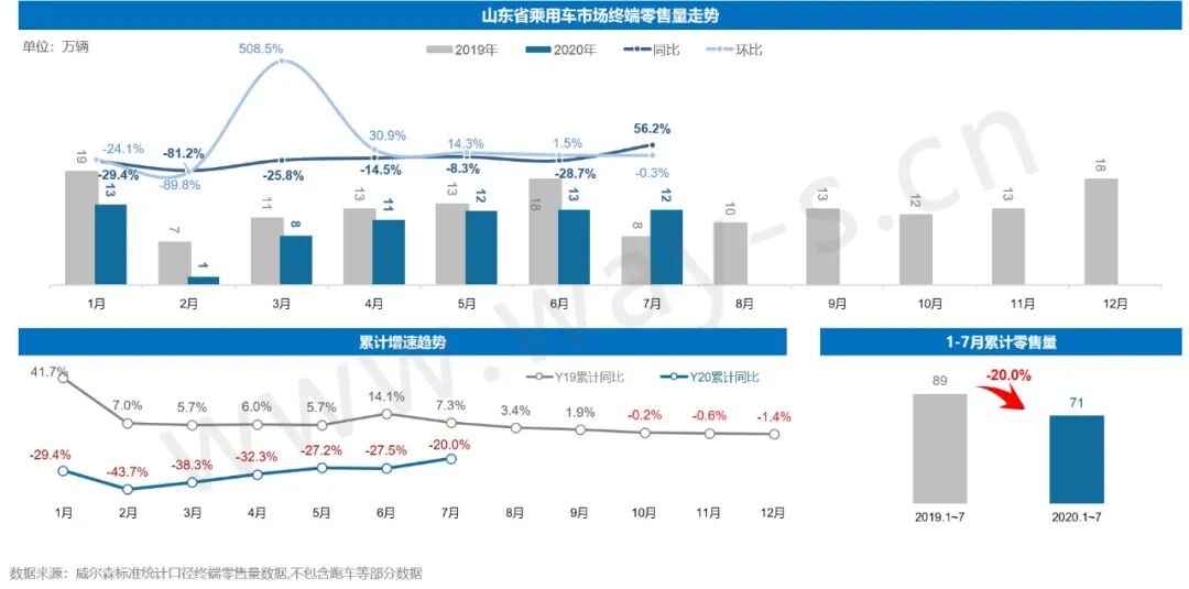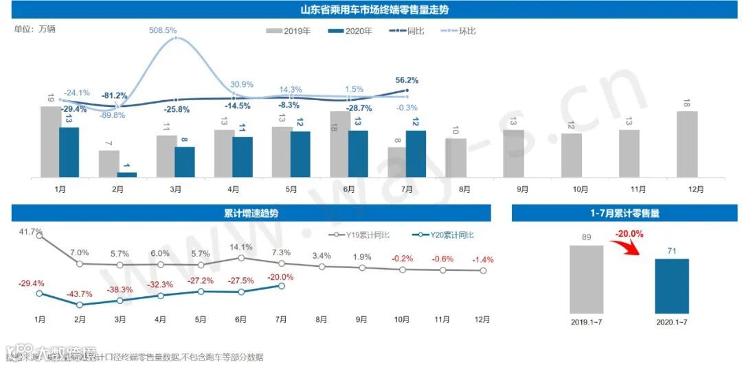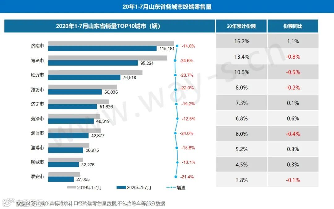 ②山东省一个省份销量相比全国整体市场来看体量较小,虽然2020年7月销量为12万辆,相较去年7月增长4万辆,但是由于去年基数较小,同比也有50%以上的增幅,销量表现值得肯定。