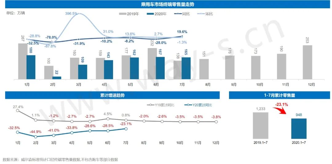 其中,根据威尔森监测的数据显示,7月乘用车市场终端零售同比增长19.6%。