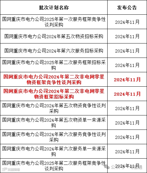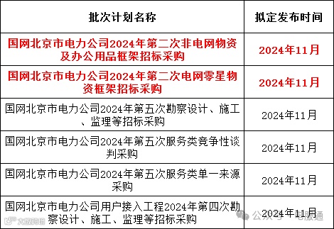 4、国网北京、重庆发布2024年第二次零星物资框架招标采购;