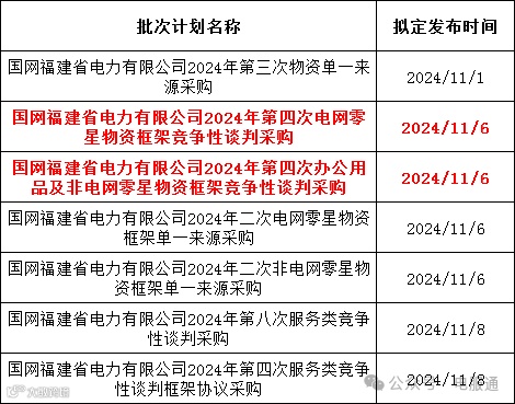 5、国网福建发布2024年第四次零星物资电商化采购;