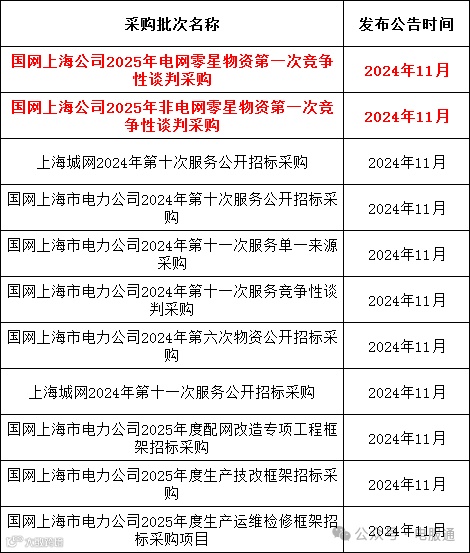 3、国网上海发布2025年第一次零星物资电商化招标采购;
