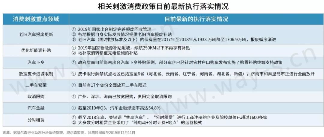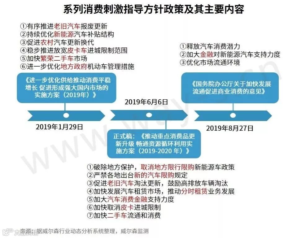 2019年,消费刺激政策都有涉及汽车产业的重点内容,表明了汽车产业是国家重点支柱产业的地位不变,对市场也有积极的影响,但短期内对汽车销量增长的直接影响不大,并且也需要各相关部门加速落实具体鼓励措施。