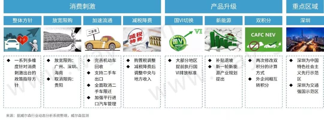 2019年我国汽车行业相关重点政策主要集中在下半年发布,重点围绕消费刺激、产品升级以及重点区域(深圳)三大方向进行部署。