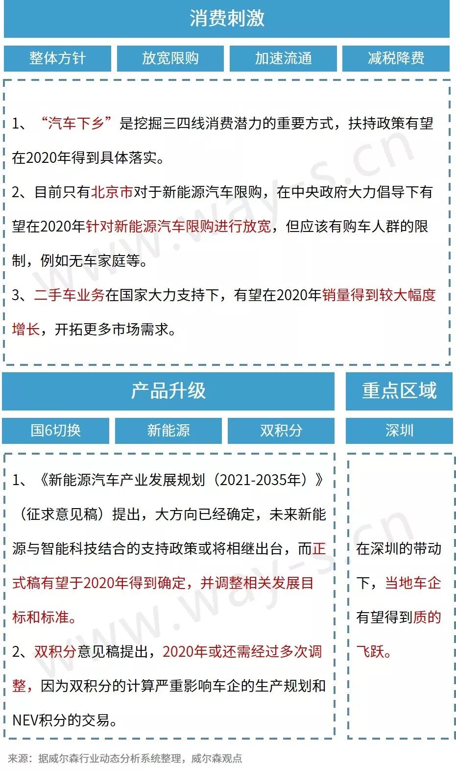 威尔森相信2020年政策将持续加速汽车产品升级,推进汽车电动化和智能化融合发展,优化汽车消费环境。