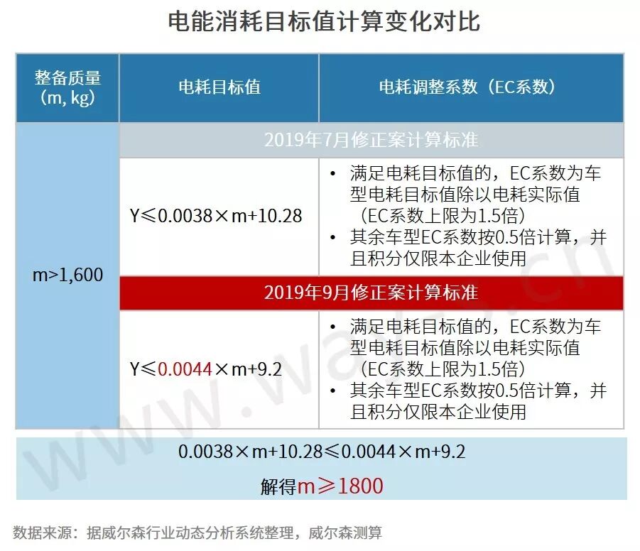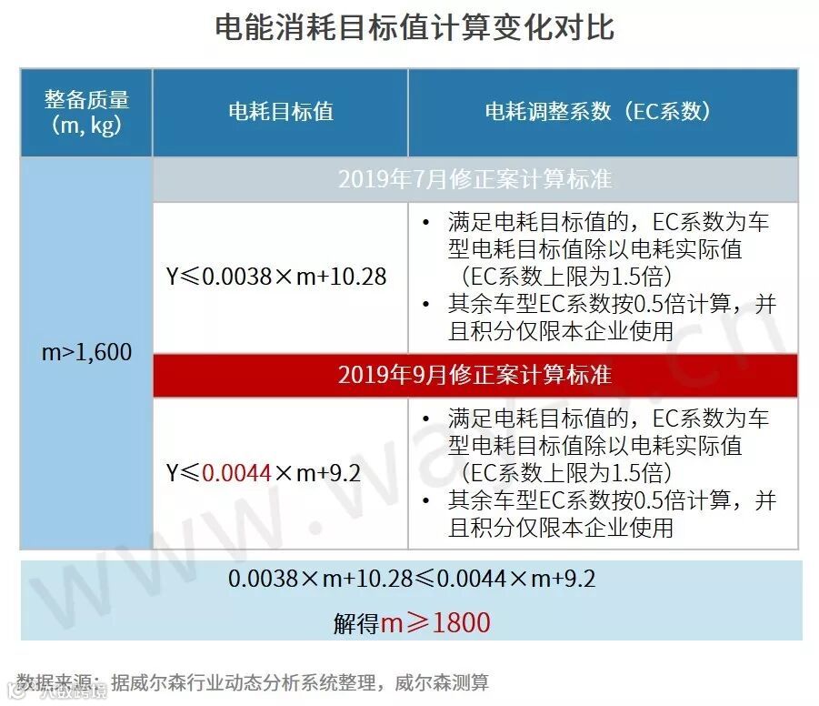 新版本的电能消耗目标值根据威尔森的测算,整备质量大于1.8t的纯电动乘用车的电能消耗量目标值有所放宽。