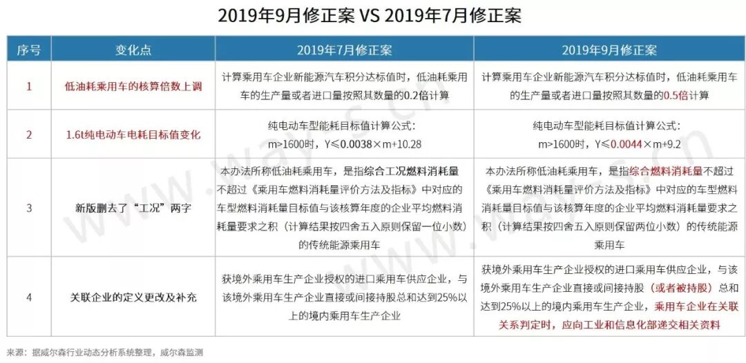 最新版双积分政策修正案,主要变化有四项,两项积分计算公式上的微调及两项文字内容的修正。