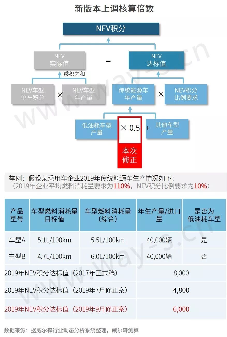 本次最新版本的征求意见稿上调了在计算新能源汽车积分达标值时低油耗乘用车的核算倍数,将直接增大只生产燃油车的传统车企达到NEV积分达标值的压力。