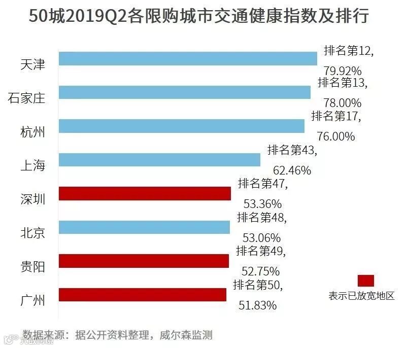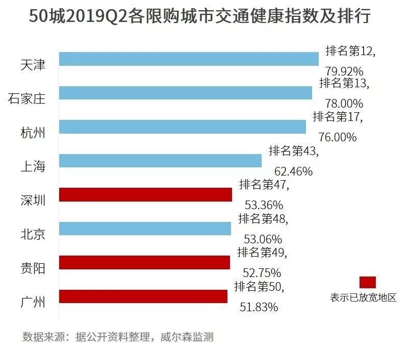 缓解城市交通拥堵是地方政府出台限购政策的核心原因,结合2019年Q2各限购城市的交通健康指数来看,未来健康指数偏好的限购城市有望跟进落地适合当地情况的放宽政策。