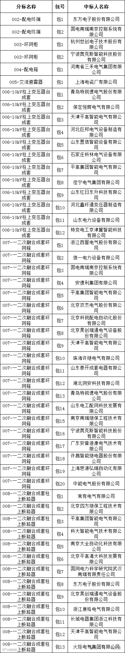 国网黑龙江省电力有限公司2024年第一次增补配网物资协议库存公开招标采购项目评标工作已经结束,经评标委员会评审,现将中标结果公告如下: