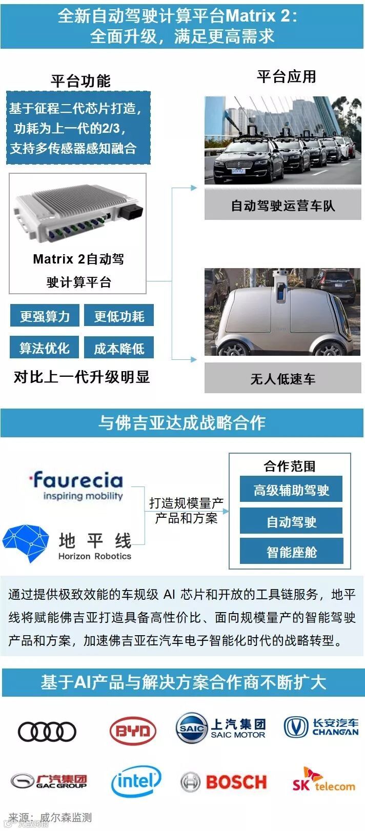 在2020年CES上,地平线全新一代自动驾驶计算平台Matrix 2正式亮相。此外,地平线宣布与汽车零部件供应商佛吉亚签署战略合作,双方将围绕智能座舱和ADAS(高级驾驶辅助)等领域展开探索。