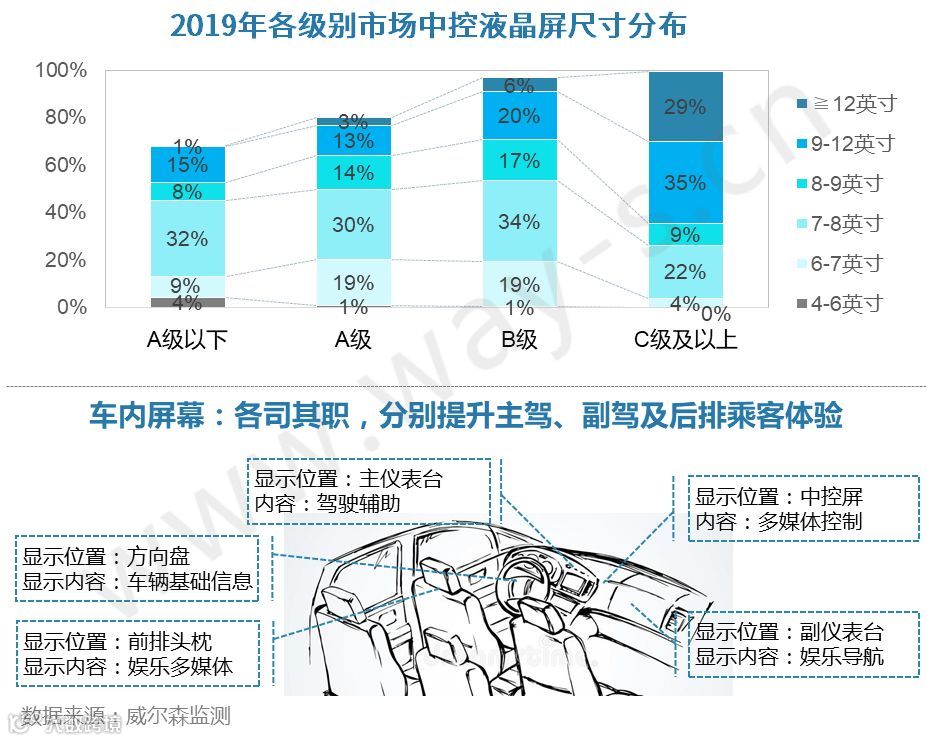 时尚科技:大尺寸屏幕因更具时代感而受到消费者青睐,预计9-12吋将在未来三年内加快下沉至中低级市场;另外,随着智能网联技术的发展,越来越多的功能被导入出行场景,信息显示的内容和维度呈指数级增长,原本以驾驶为中心的信息架构,将会根据驾驶辅助、娱乐、互动、个性化设置等层级进行分解。