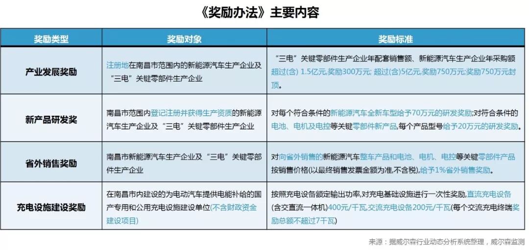 3月1日,南昌市发布了《2018年南昌新能源汽车推广应用奖励办法》,分别从四个奖励方向对新能源汽车及“三电”关键零部件生产企业予以奖励,旨在促进新能源整车产品和三电新产品的销量,加快推进新能源汽车的推广应用。