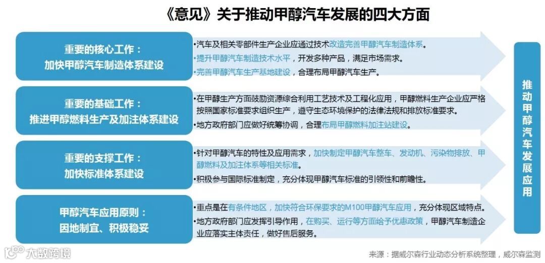 《意见》重点在甲醇汽车制造体系建设、甲醇燃料生产及加注体系建设、甲醇汽车标准体系建设、甲醇汽车应用四大方面提出了指导意见,随着《意见》的下发,将进一步加快推动我国甲醇汽车的发展应用,实现车用燃料多元化。