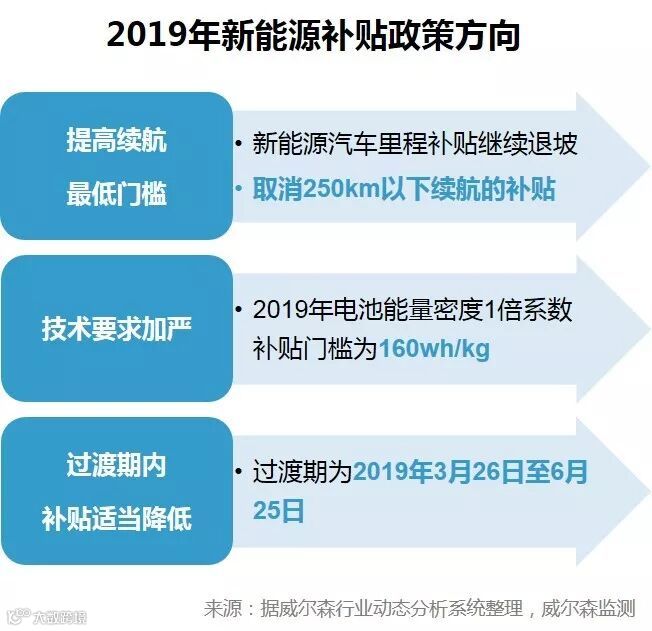 3月26日,四部委联合印发了《关于进一步完善新能源汽车推广应用财政补贴政策的通知》。通知从发布当日起实施,2019年3月26日至2019年6月25日为过渡期。