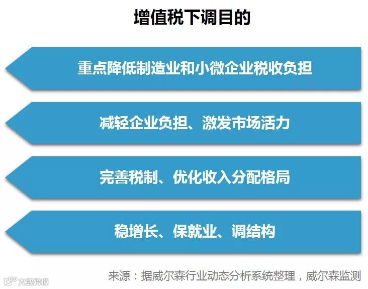 据国家统计局数据显示,近年来,中国GDP增速有所放缓,工业企业利润有所下滑,在宏观经济下行压力下,国家减税降负势在必行。《公告》表示2019年4月1日增值税减税正式实施,此次下调重点降低制造业和小微企业税收负担。