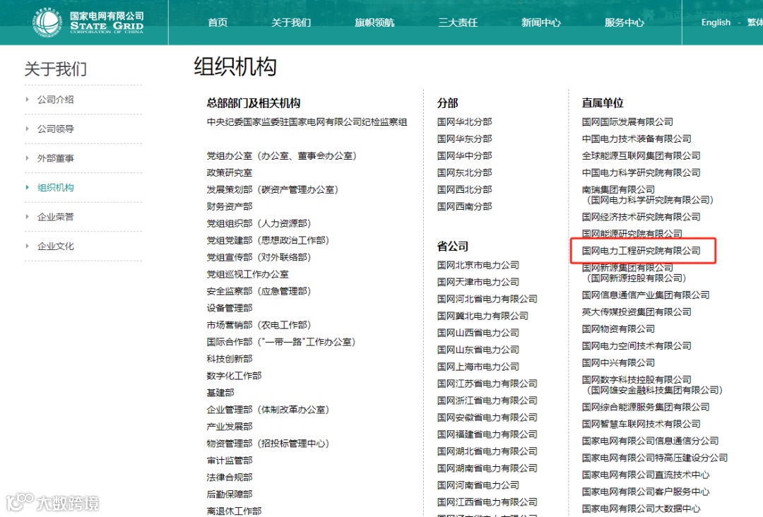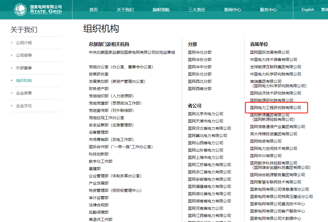 目前国家电网公司网站组织机构直属单位一栏已经显示国网电力工程研究院有限公司