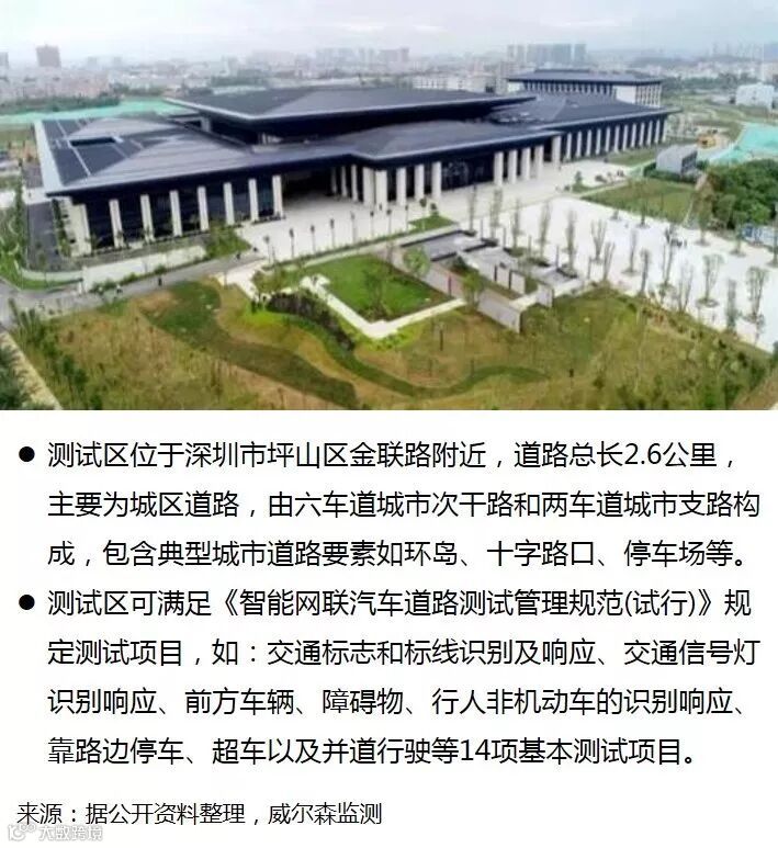 2019年3月8日,“深圳智能网联交通测试示范区”在深圳坪山举行启用仪式,该测试示范区支持单车自动驾驶的标准、法规及研发测试,同时可满足网联式自动驾驶的应用测试与验证。