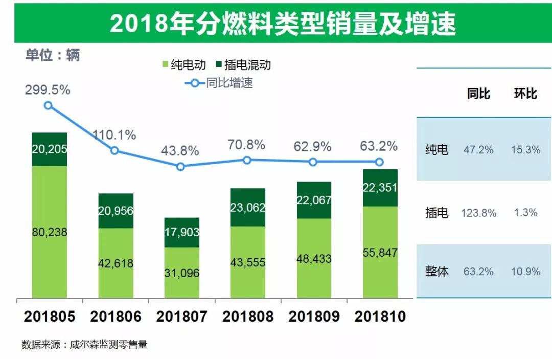 10月新能源乘用车市场零售7.8万辆,同比增长63.2%,环比上升10.9%;1-10月累计零售55.1万辆,同比增长111.5%。在2018年地方补贴政策多数落地,2019年补贴情况暂不明确的情况下,消费者购买意向热度不减,新能源车市场至年底或将继续维持稳健的增势。