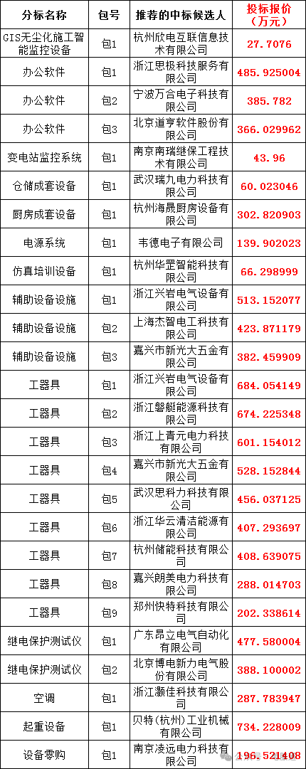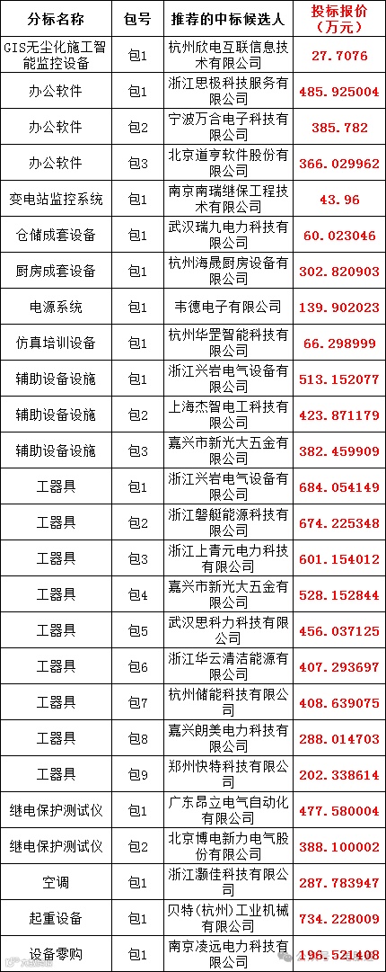 国网浙江省电力有限公司2024年产业单位第二次物资类公开招标采购的评标工作已结束,依据《中华人民共和国招标投标法实施条例》、《招标公告和公示信息发布管理办法》对中标候选人公示的规定,现将评标委员会推荐的中标候选人予以公示,公示期3日。投标人或者其他利害关系人若对评标结果有异议的,请在中标候选人公示期间以书面形式(传真)提出。