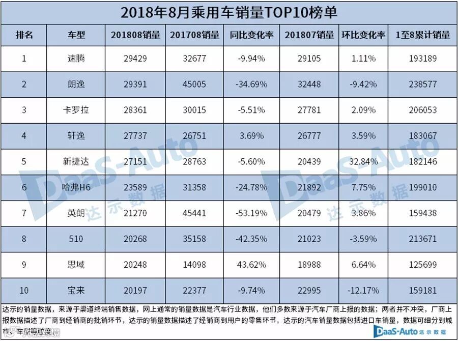 榜单中同比涨幅最大的是本田旗下的思域,同比涨幅为43.62%,8月份以20,248辆的成绩成功进入TOP10,1至8月累计销量为125,699辆。