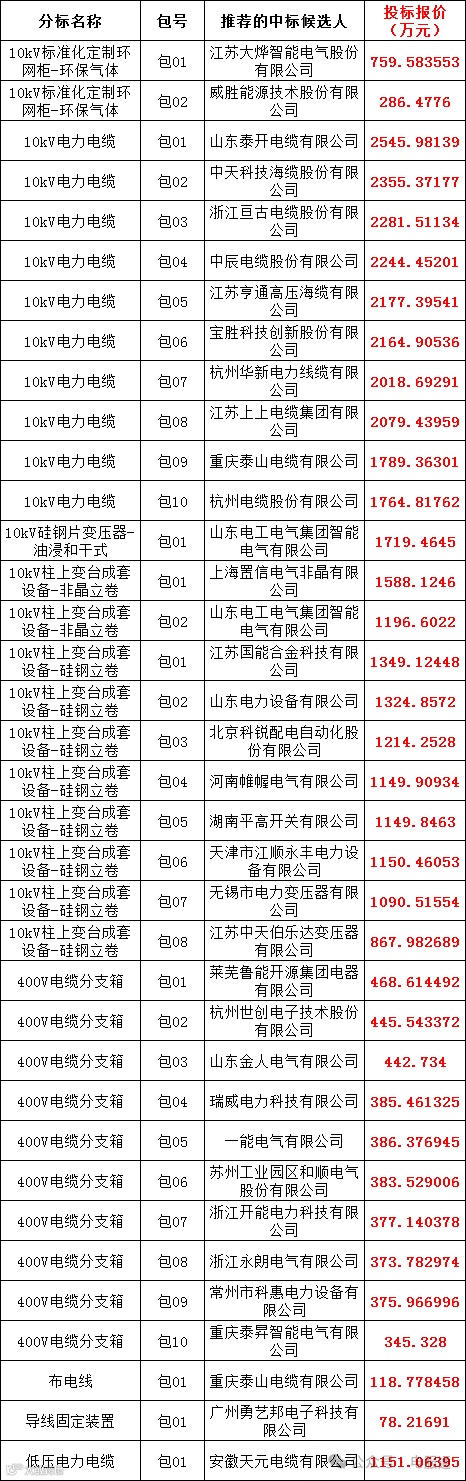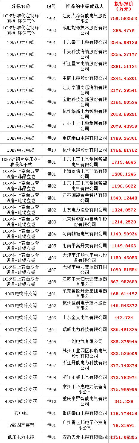 国网山东省电力公司2024年8月物资公开招标采购项目评标工作已经结束,依据《中华人民共和国招标投标法实施条例》、《招标公告和公示信息发布管理办法》对中标候选人公示的规定,现将评标委员会推荐的中标候选人予以公示,公示期3日。投标人或者其他利害关系人若对评标结果有异议的,请在中标候选人公示期间以书面形式(传真)提出。
