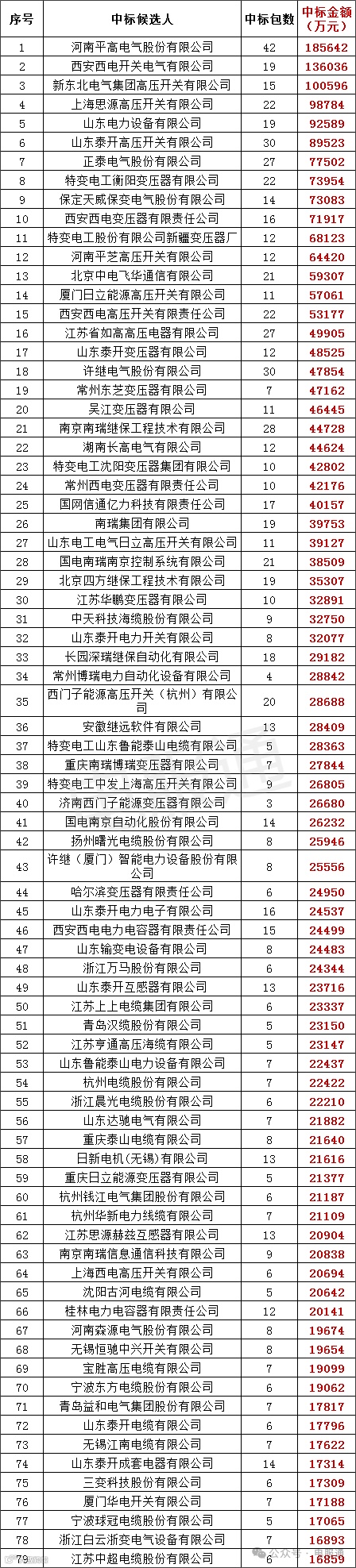 共计345个企业中标,中标超亿元的企业有115家,超过10亿元的有3家,分别是: