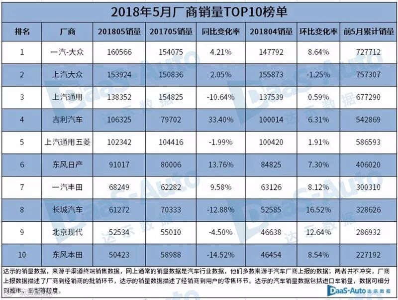 基于5月终端销售数据统计,达示数据汇总了乘用车厂商、车型、城市以及新能源多个维度的销量排行榜。