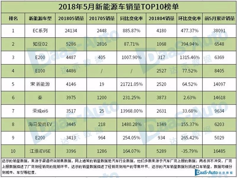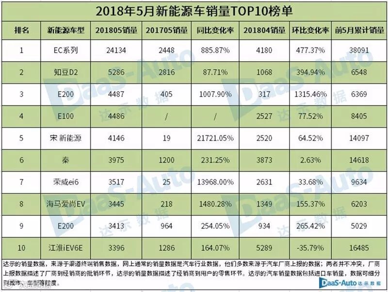 如果说哈弗H6实现回归值得赞扬,那么来自北汽新能源旗下的EC系列在5月的表现则应用“出乎意料”来形容,5月份EC系列以“黑马”姿态闪耀亮相TOP10,劲销了24,134辆,同比爆发式增长了885.87%,环比增长率也达到了477.37%,位列榜单第七,成绩相当喜人。
