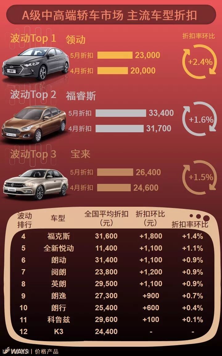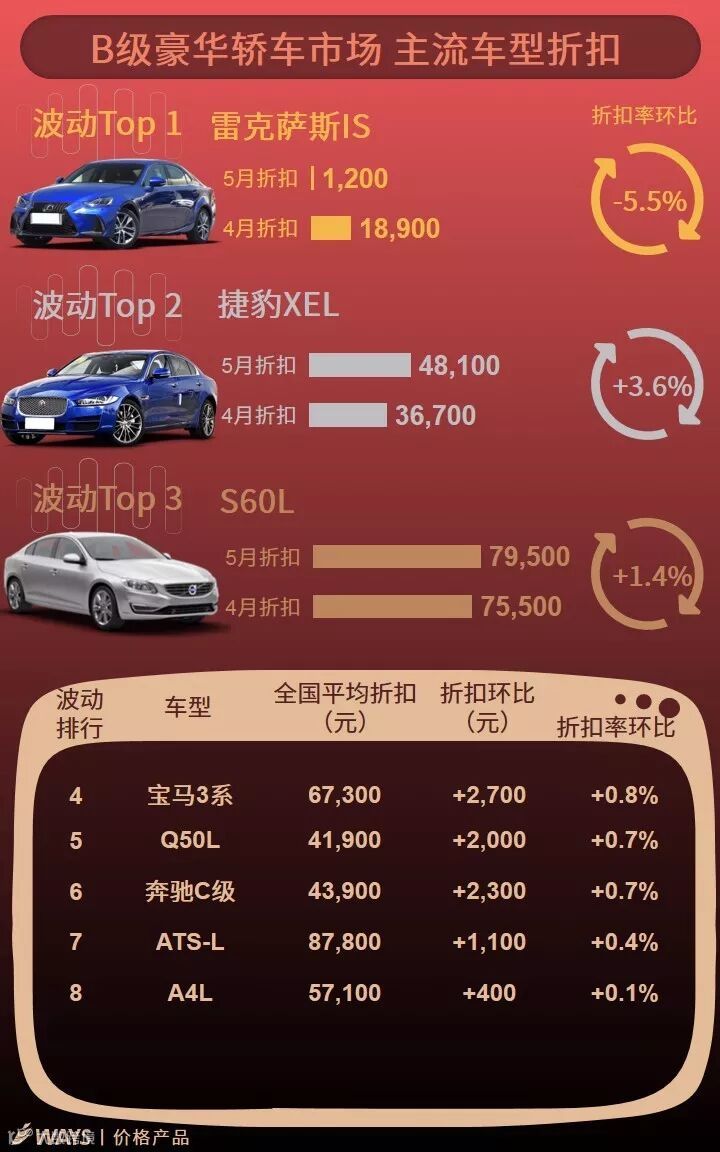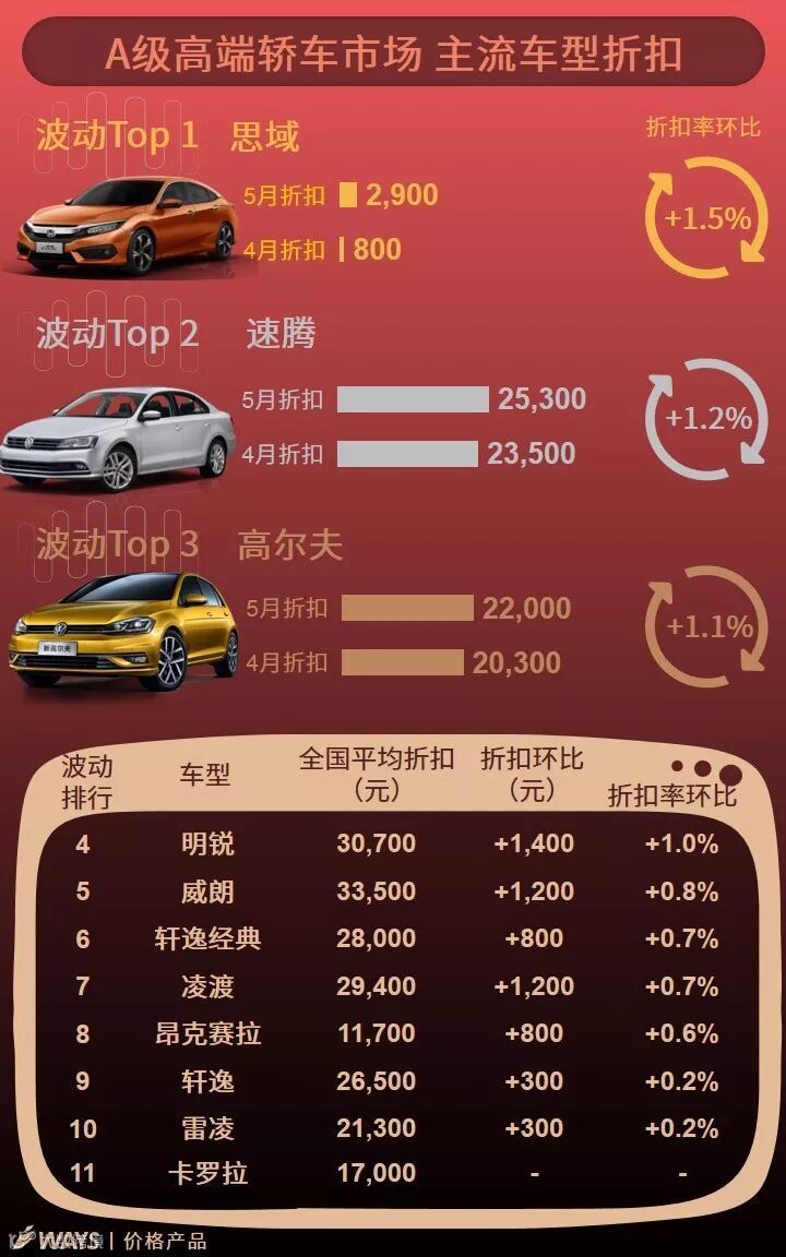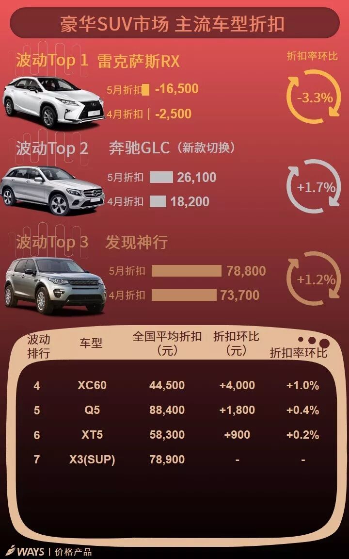 车型方面,受关税下调影响,雷克萨斯旗下车型官方指导价下调,折扣有所回收。本田、福特、大众等品牌月末冲量,旗下车型促销力度有所加大,其中,本田缤智和XR-V终端优惠增加明显,环比增加2500-3600元;福特福克斯和福睿斯折扣增加1700-1800元;大众速腾、高尔夫和明锐折扣亦增加1400-1800元。另外,北京现代ix25的折扣也有5300元的提升。