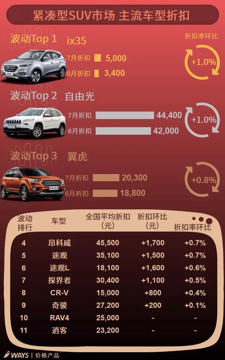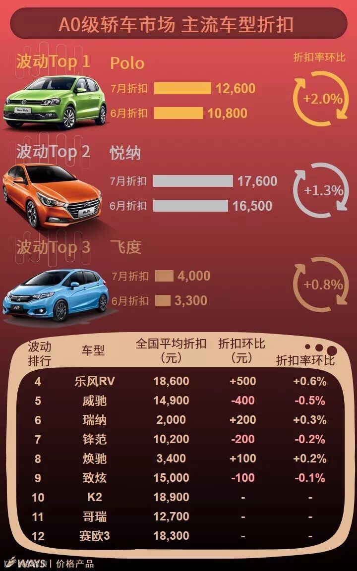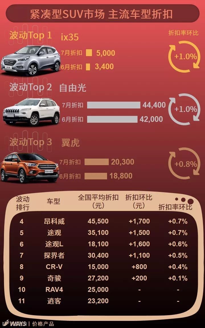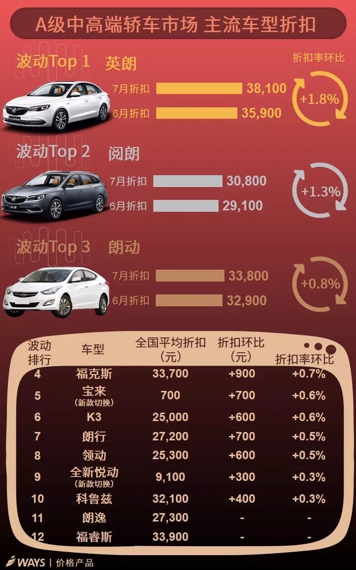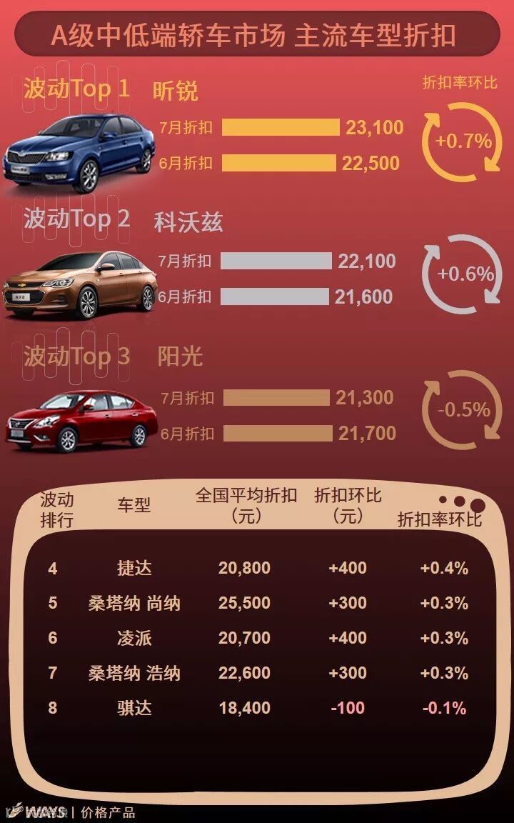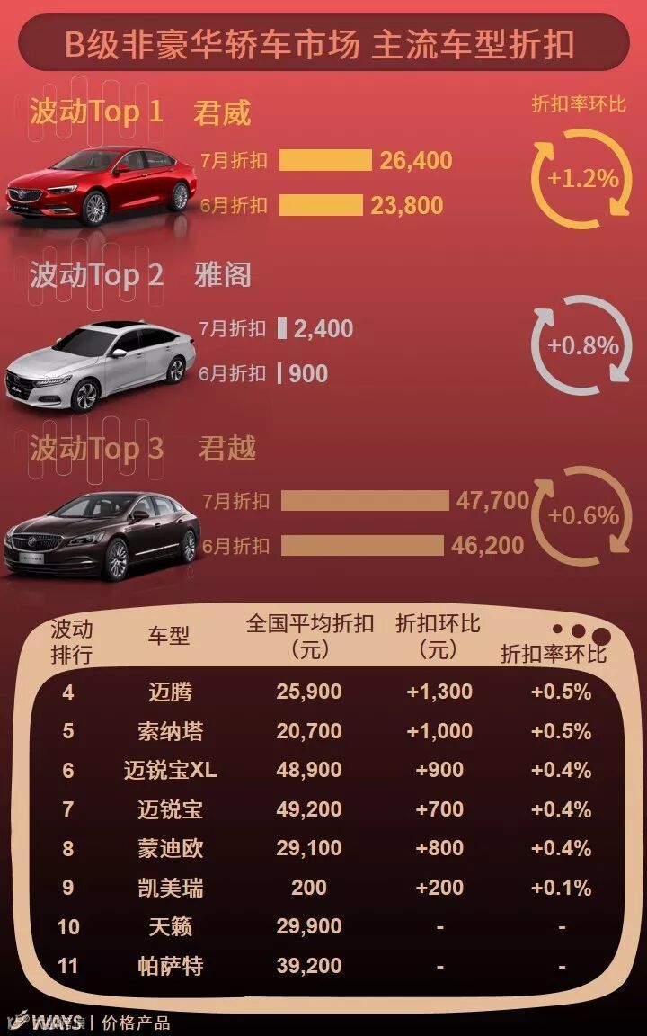 7月上半月主流车型折扣波动榜
