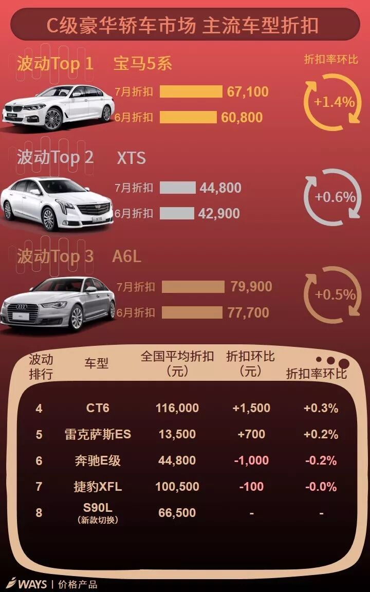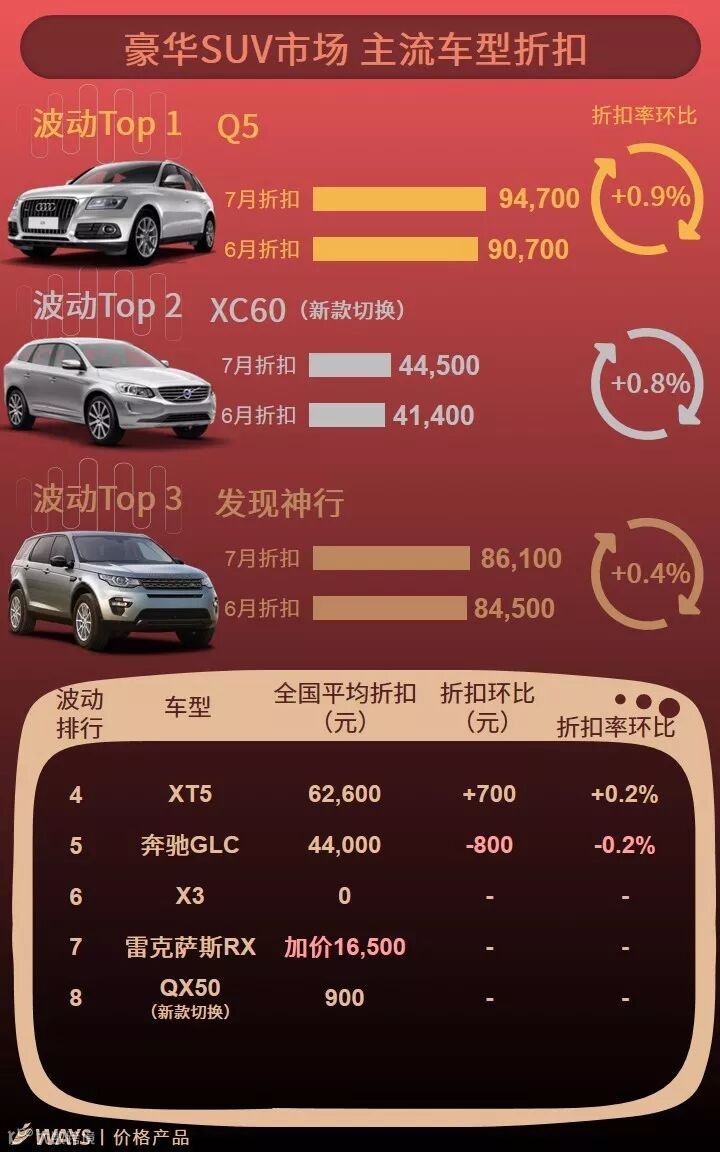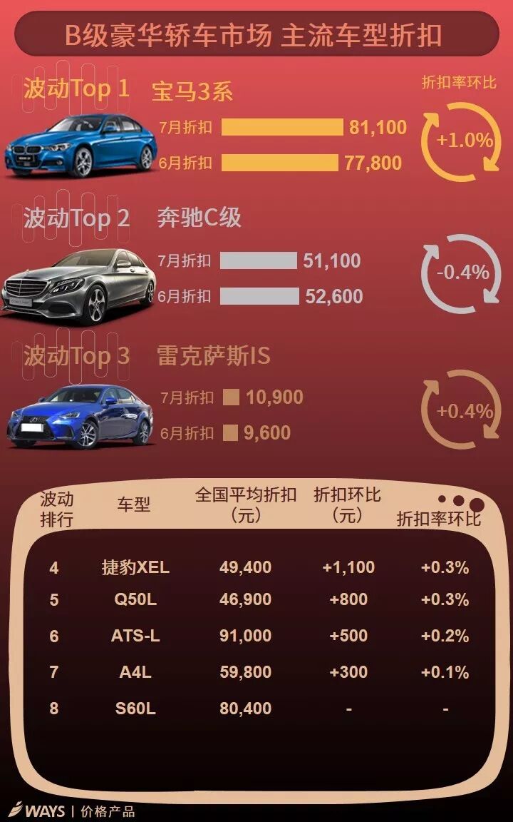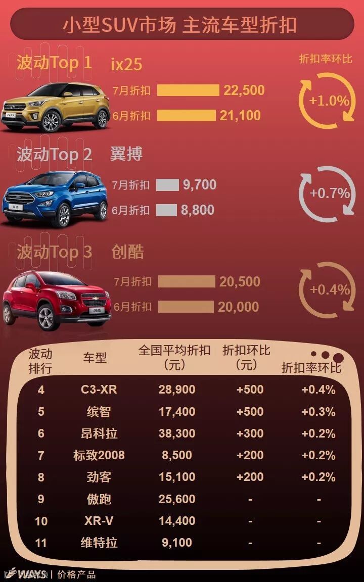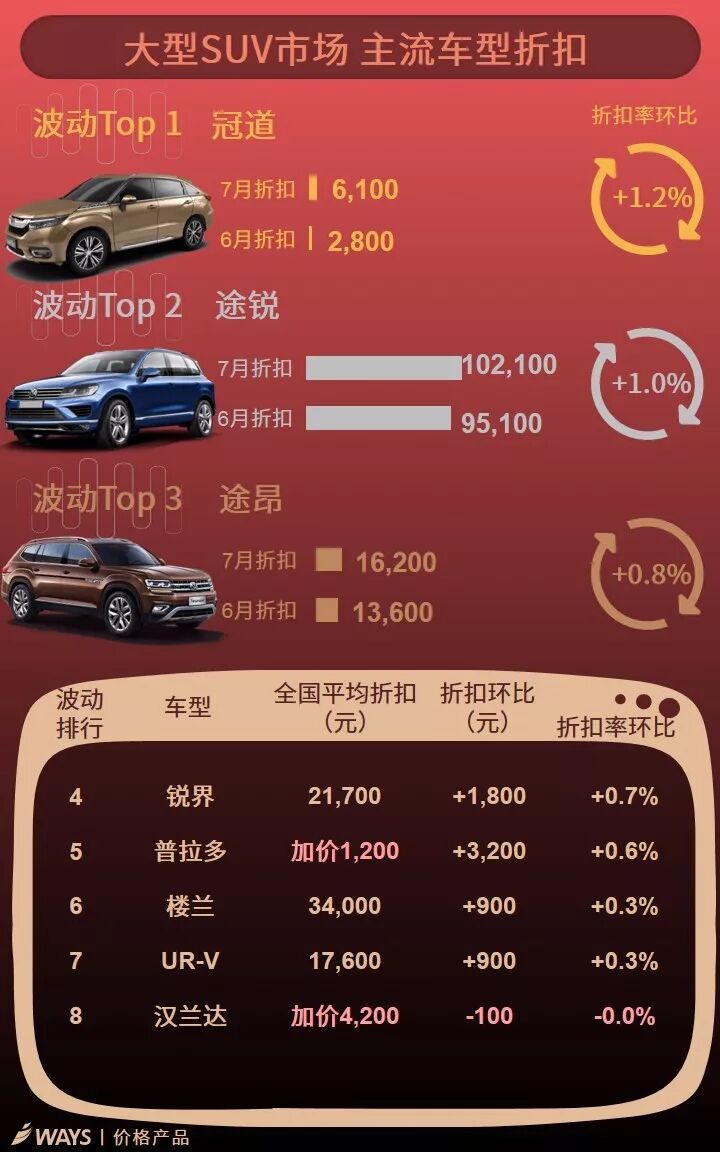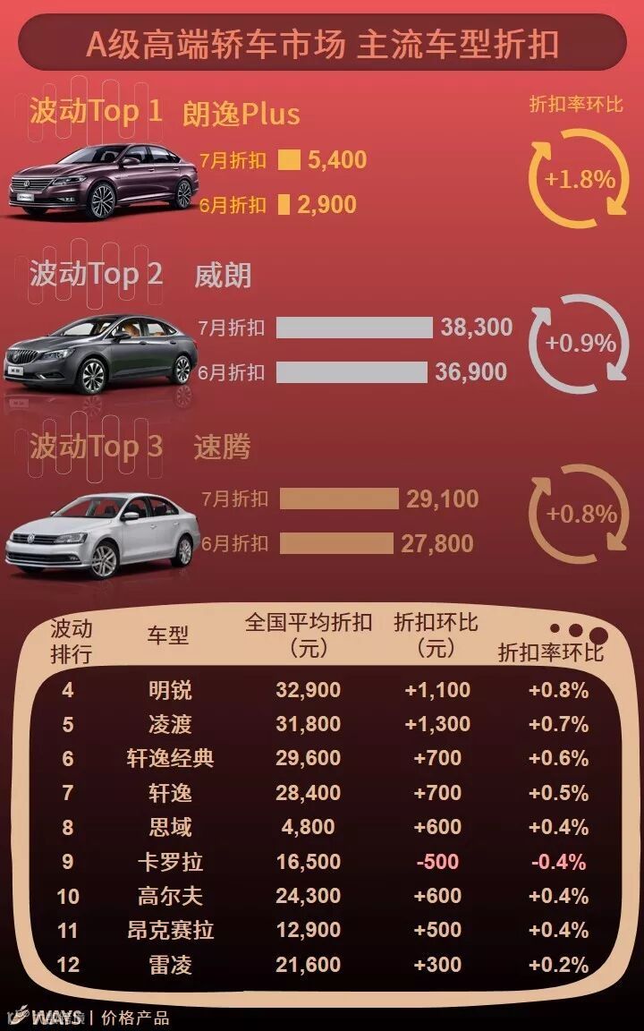 7月上半月主流车型折扣波动榜