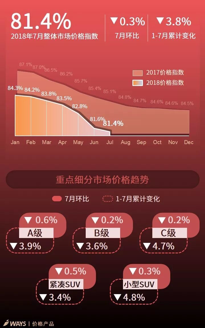但面对激烈的市场竞争,宝马、奥迪和大众等品牌仍加大优惠促销,整体市场价格下滑较多,其中A级轿车和紧凑型SUV市场价格下降幅度分别达0.6、0.5%。