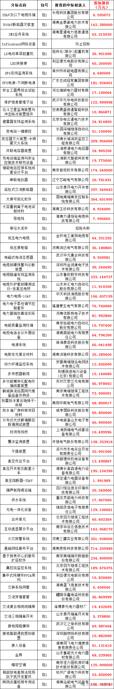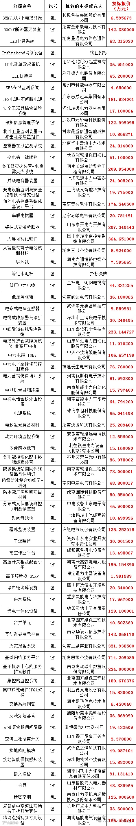 国网湖南省电力有限公司2024年第四次物资公开招标采购项目评标工作已经结束,依据《中华人民共和国招标投标法实施条例》、《招标公告和公示信息发布管理办法》对中标候选人公示的规定,现将评标委员会推荐的中标候选人予以公示,公示期3日。投标人或者其他利害关系人若对评标结果有异议的,请在中标候选人公示期间以书面形式(传真)提出。