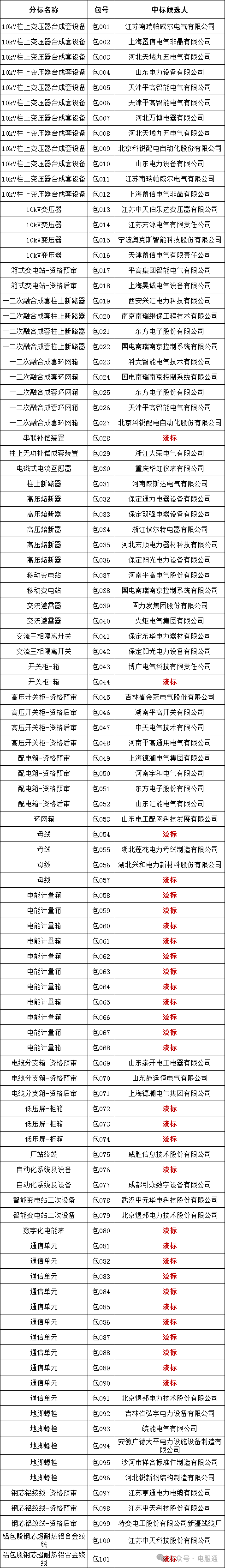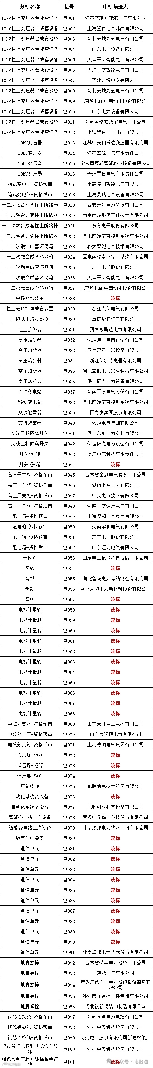 国网内蒙古东部电力有限公司2024年第一次配网协议库存公开招标采购项目的中标候选人公示活动已经结束。现将中标人名单公告如下: