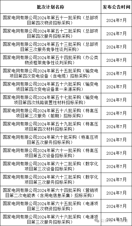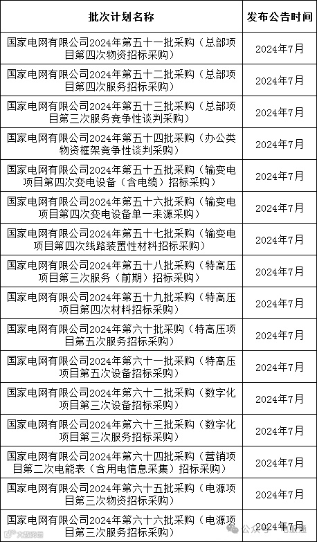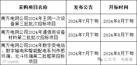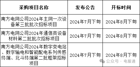 南方电网7月份关注:2024年主网一次设备第三批批次招标项目;