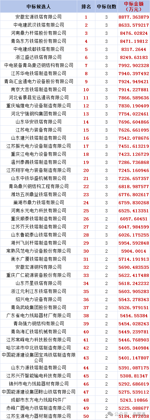 此次招标共计:205家企业中标,其中: