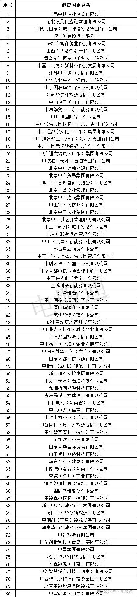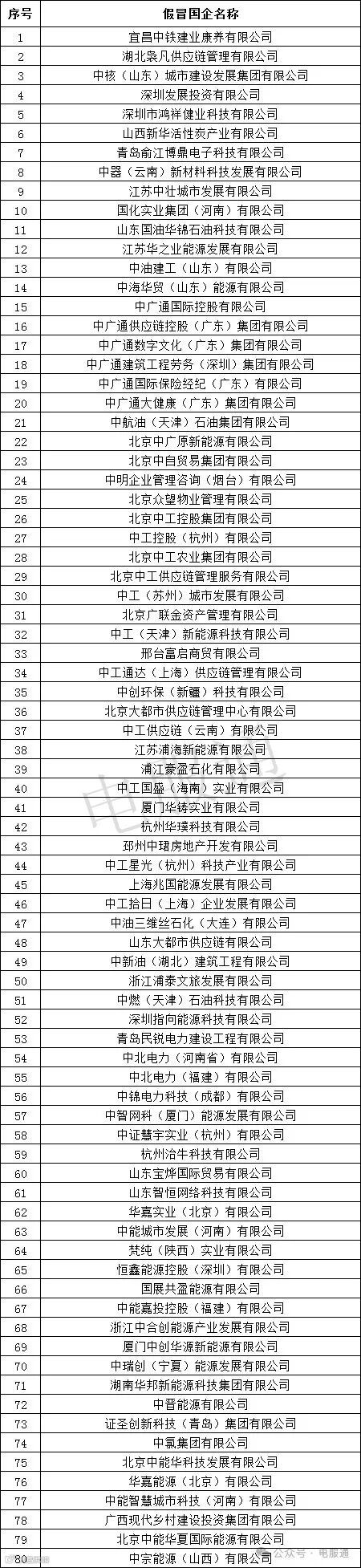 一段时间以来,部分不法分子通过伪造单位公章、提供虚假证件等方式,注册冒用中央企业名号开展活动,对中央企业的经营发展、品牌形象、社会信誉带来不良影响。2021年以来,国务院国资委先后公布三批假冒中央企业名单,国家电网已将上述企业纳入高风险供应商名单。