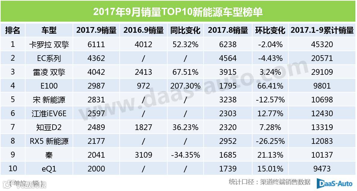 9月新能源车表现较好,除比亚迪秦销量同比下跌34.35%外,另有4款车型的销量同比增幅都达到了两位数以上,其中宝骏E100同比增幅甚至高达207.3%。
