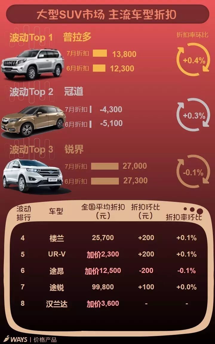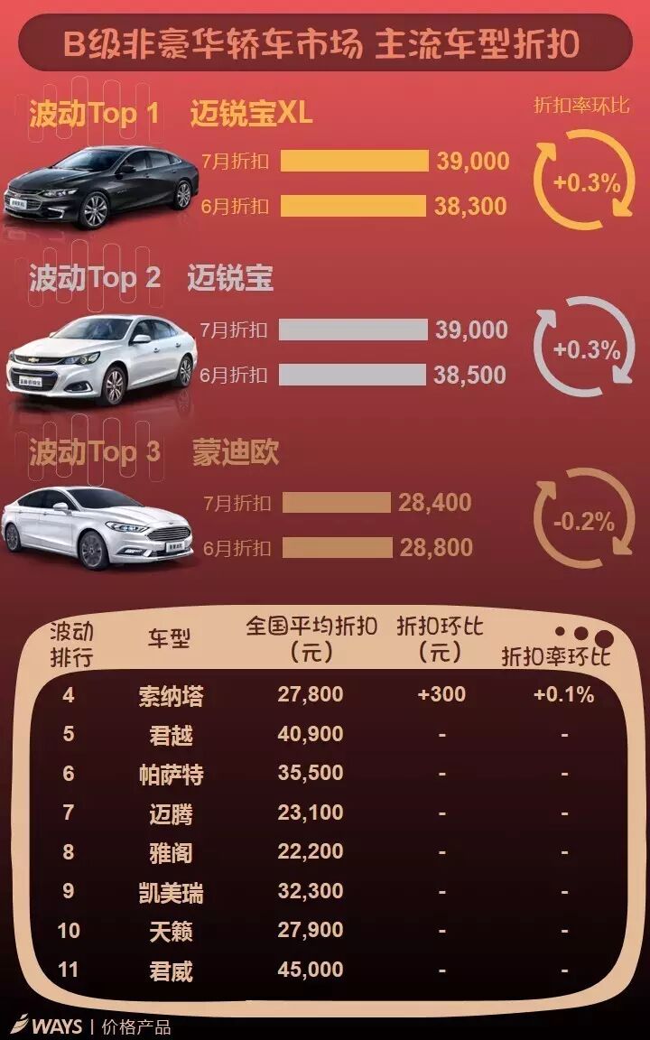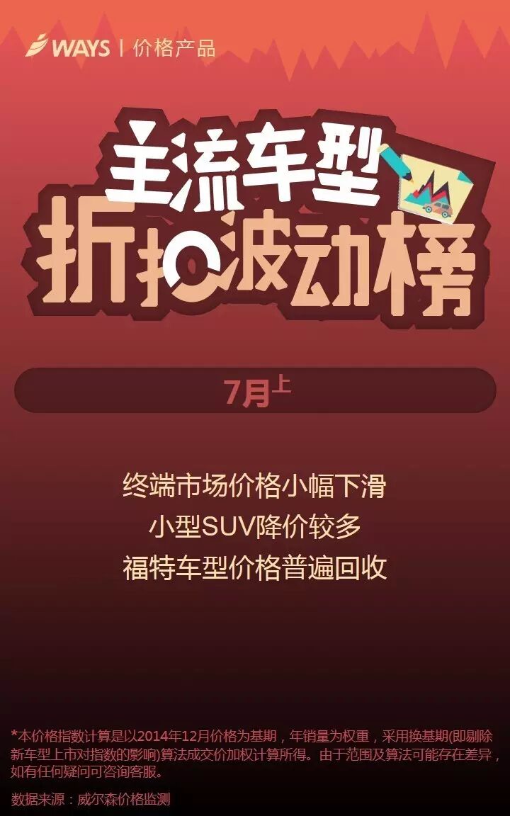 车型方面,6月降价过猛的福特面对上半年考核结束,销售压力得以缓解,终端车型价格小幅度回收。