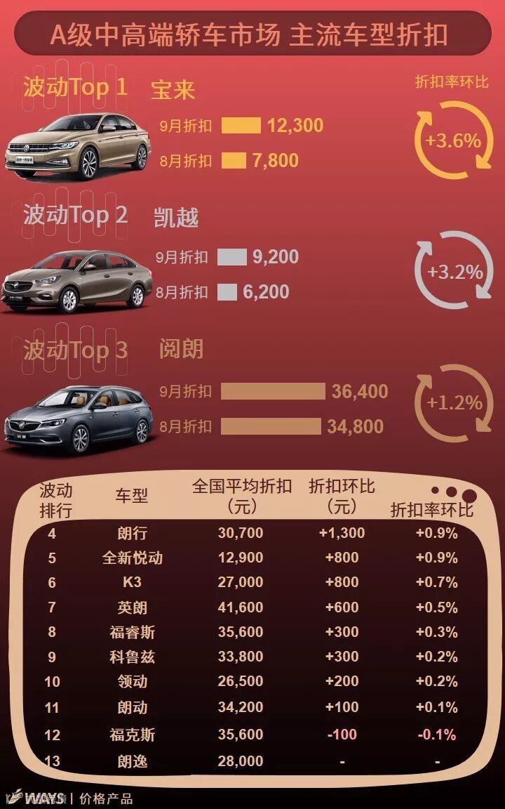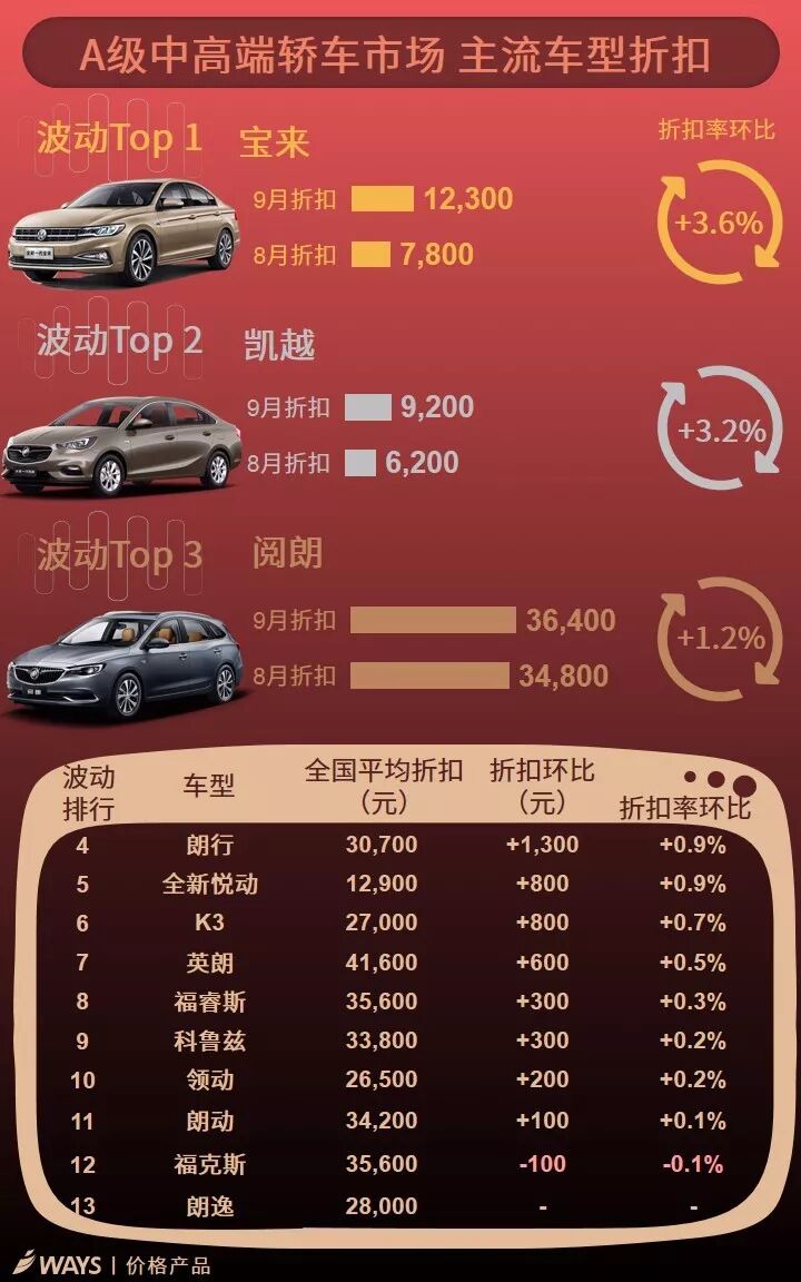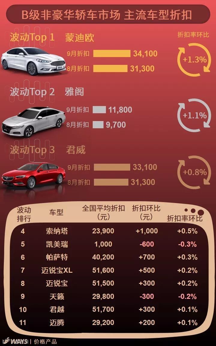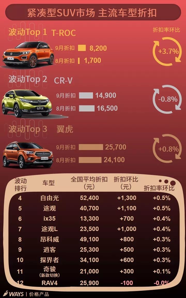 9月下半月主流车型折扣波动榜