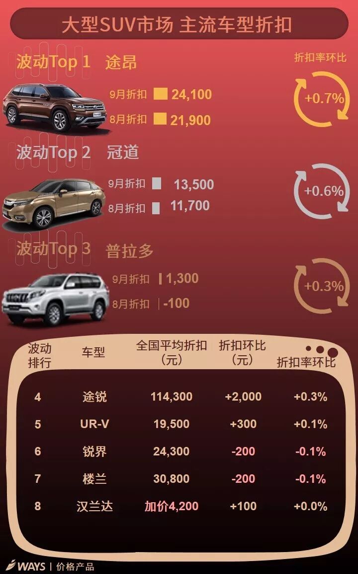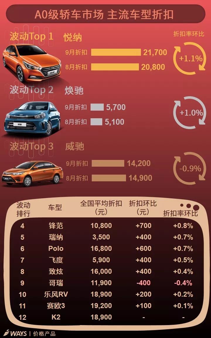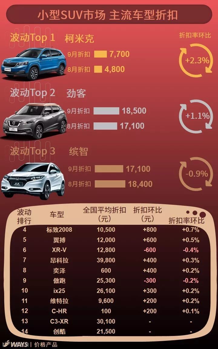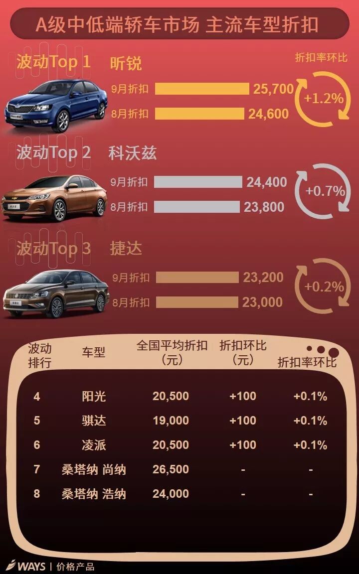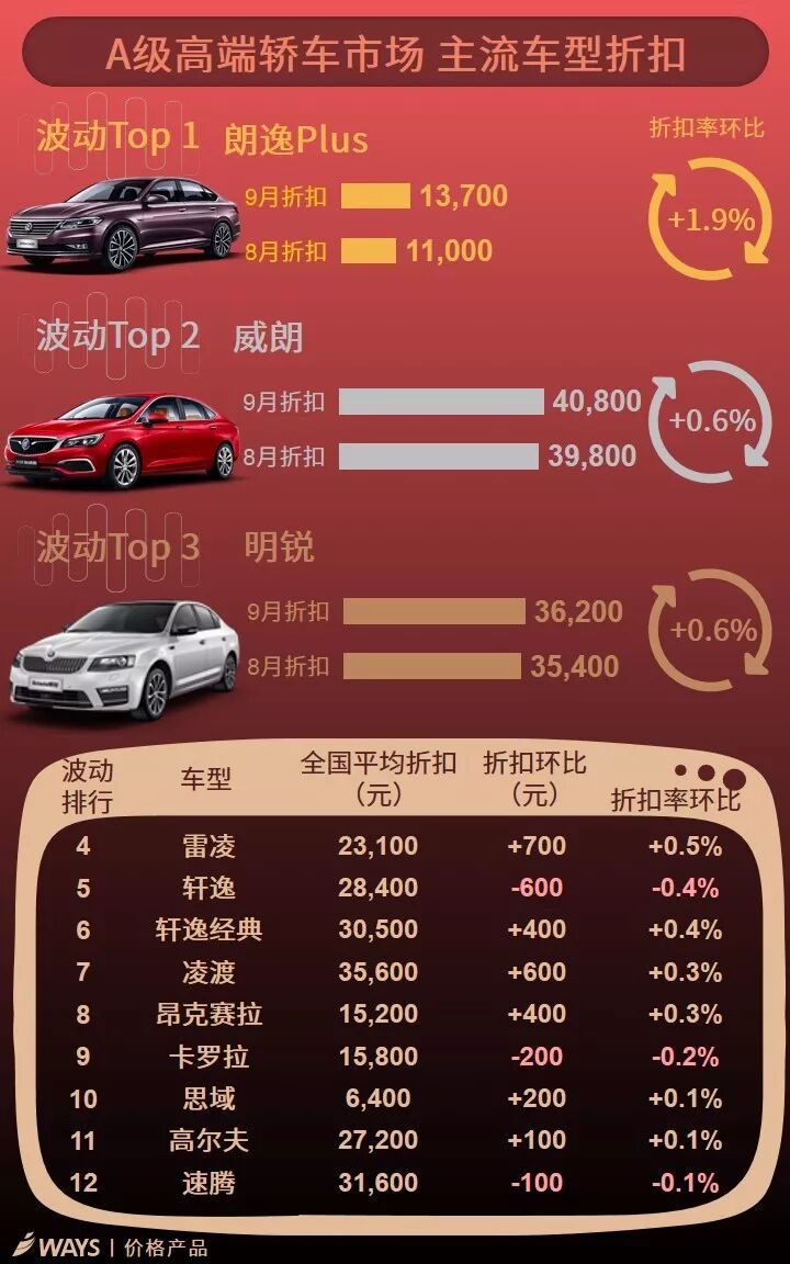 9月下半月主流车型折扣波动榜