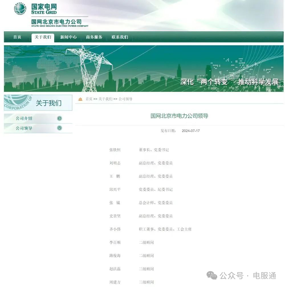 近期,登录国网北京市电力公司的官网,显示公司领导的信息有变动: