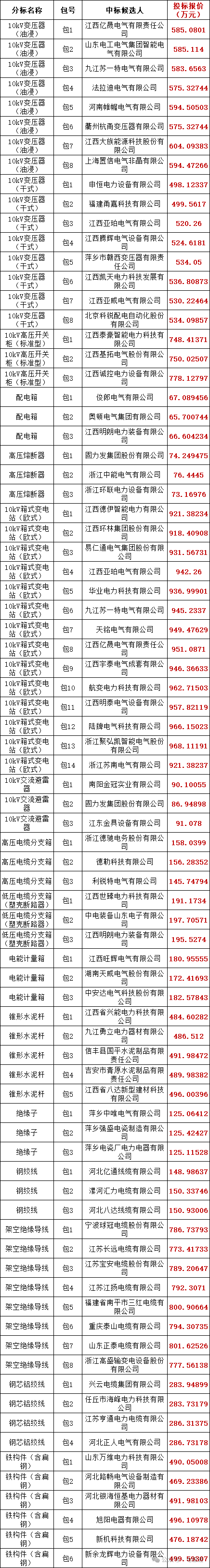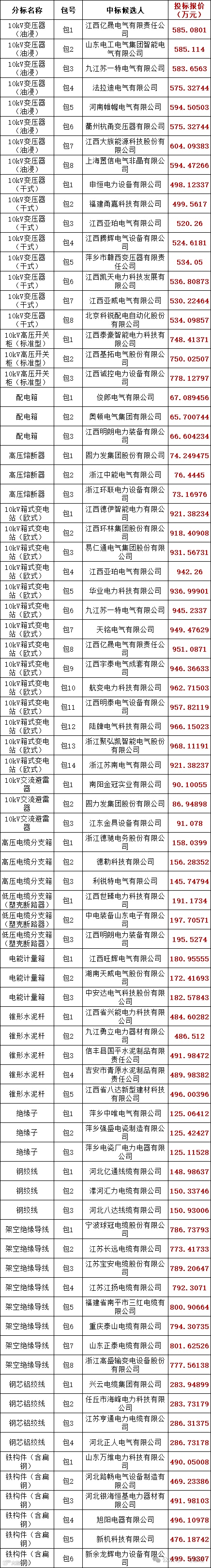 国网江西省电力有限公司2024年第一次省管产业物资框架集中招标采购项目项目评标工作已经结束,依据对中标候选人公示的规定,现将评标委员会推荐的中标候选人予以公示,公示期3日。投标人或者其他利害关系人若对评标结果有异议的,请在中标候选人公示期间以书面形式(传真或电子邮件)提出。
