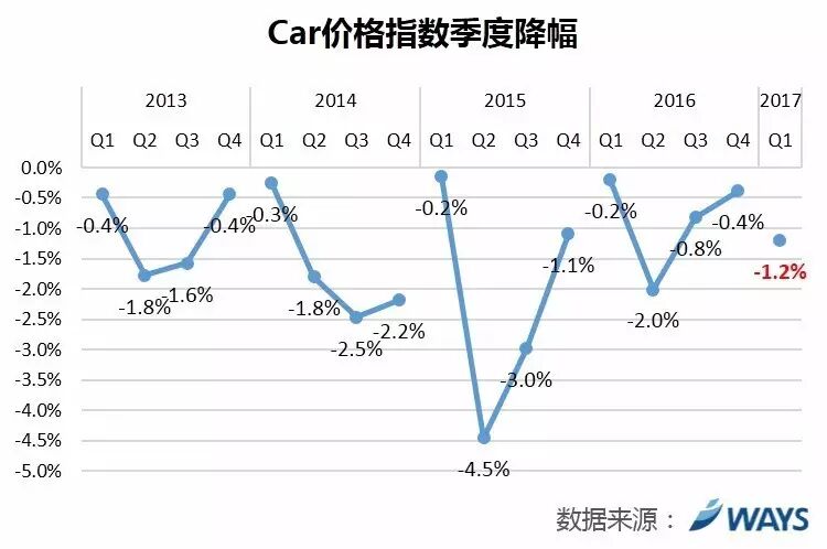 从上面的几个图可以看出,第一季度价格降幅较大的细分市场是Car与SUV,降幅均为1.2%。虽然降幅相近,但是原因却大不相同。